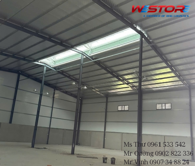 Kho xưởng được thiết kế thoáng mát mái cao 10m đến 12m ,điện 3 fa, nước máy, wc, tôn cách nhiệt, đường xe tải 2t5 ra vào,...