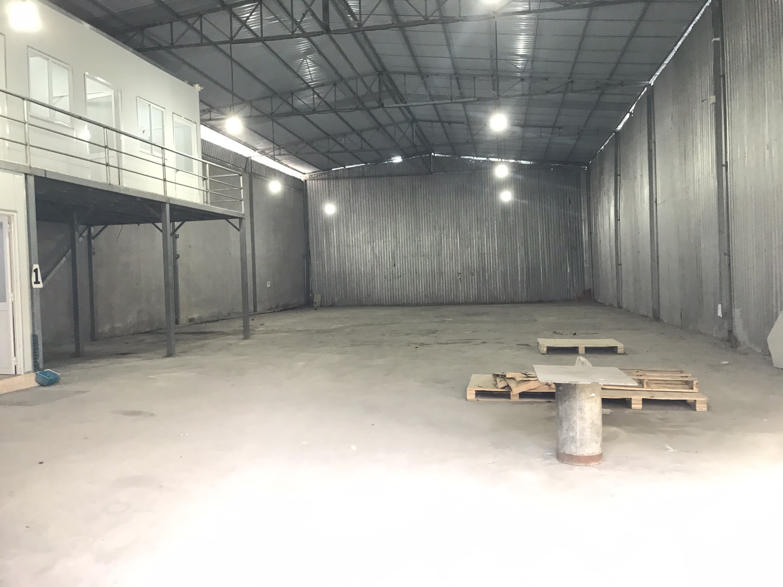 Kho có 3 văn phòng, 1 wc, 1 phòng bảo vệ.