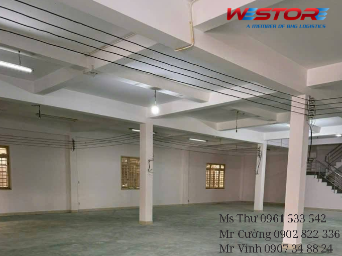 Đường nhựa 8m , xe tải lưu thông Kho sạch sẽ, kiên cố, thoáng mát, Wc. Phù hợp sản xuất gia công nhẹ, xưởng may, thực phẩm, kho hàng...